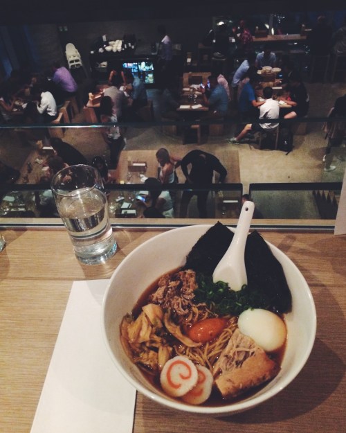 We walked in the restaurant around 9PM on a friday and was seated almost immediately. We were seated on the second floor at a bar-like table overseeing the first floor of the restaurant. The staff was very friendly and helped us make choices based on our taste and preferences. I ordered the momofuku ramen of course.