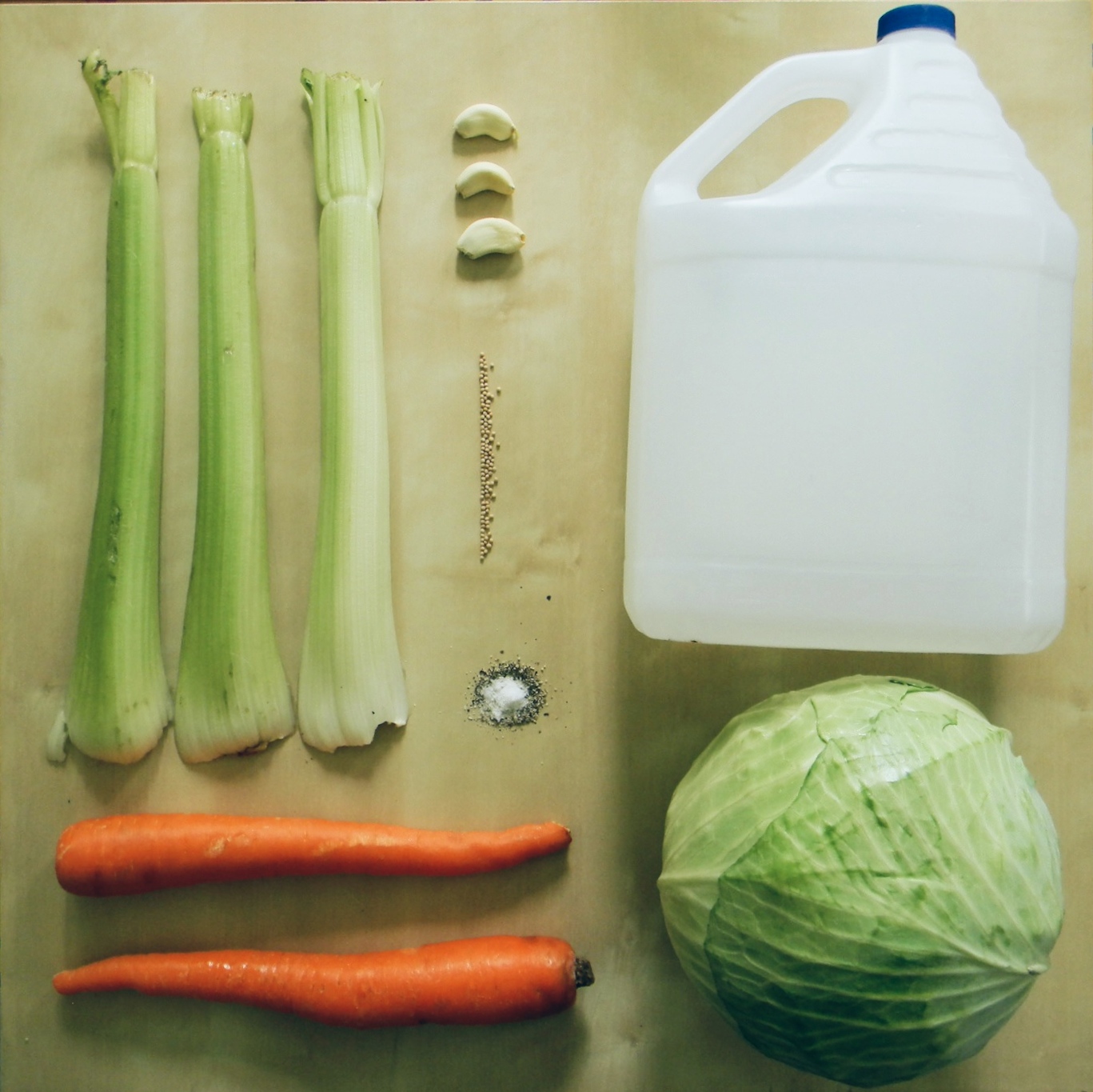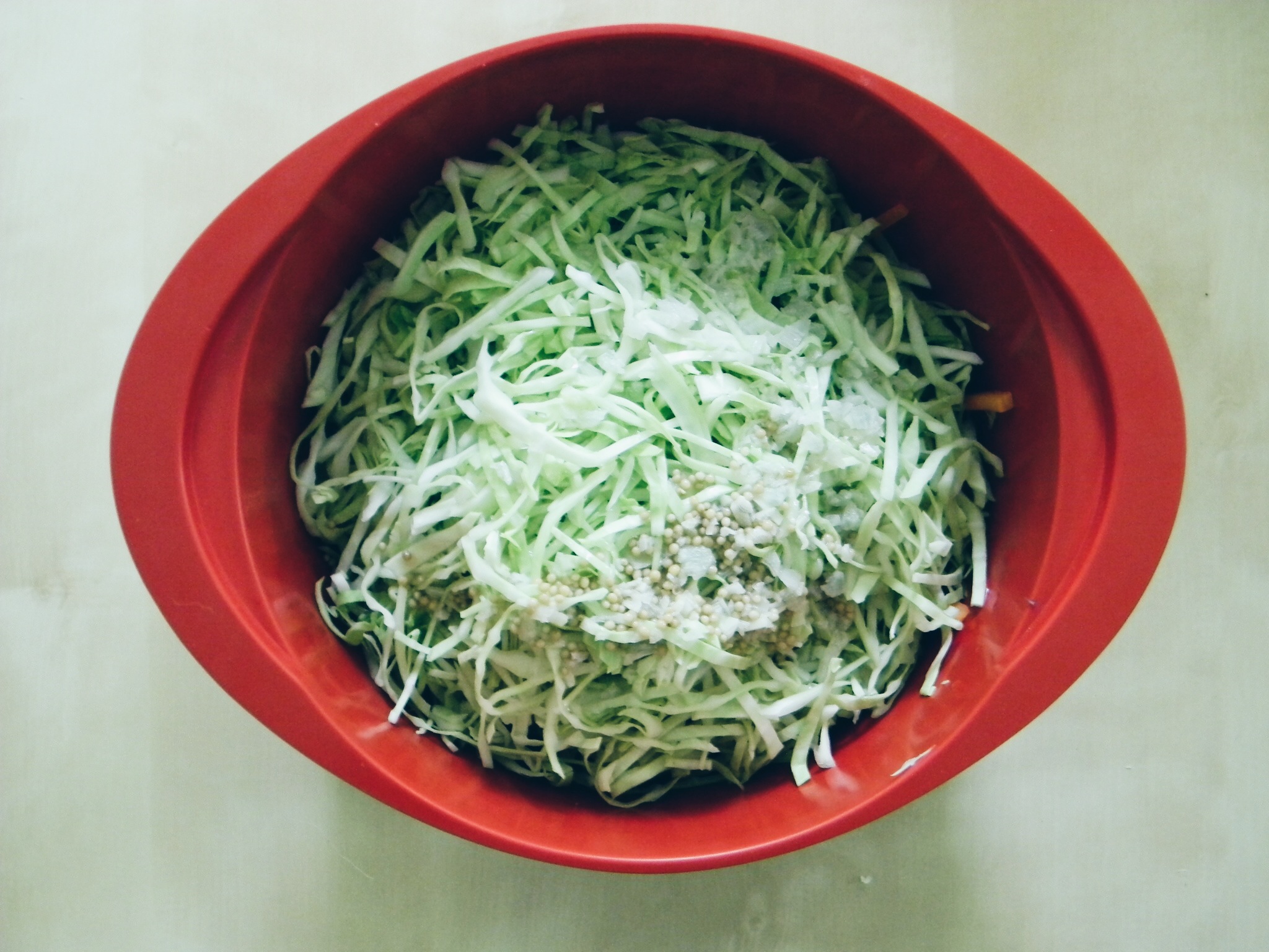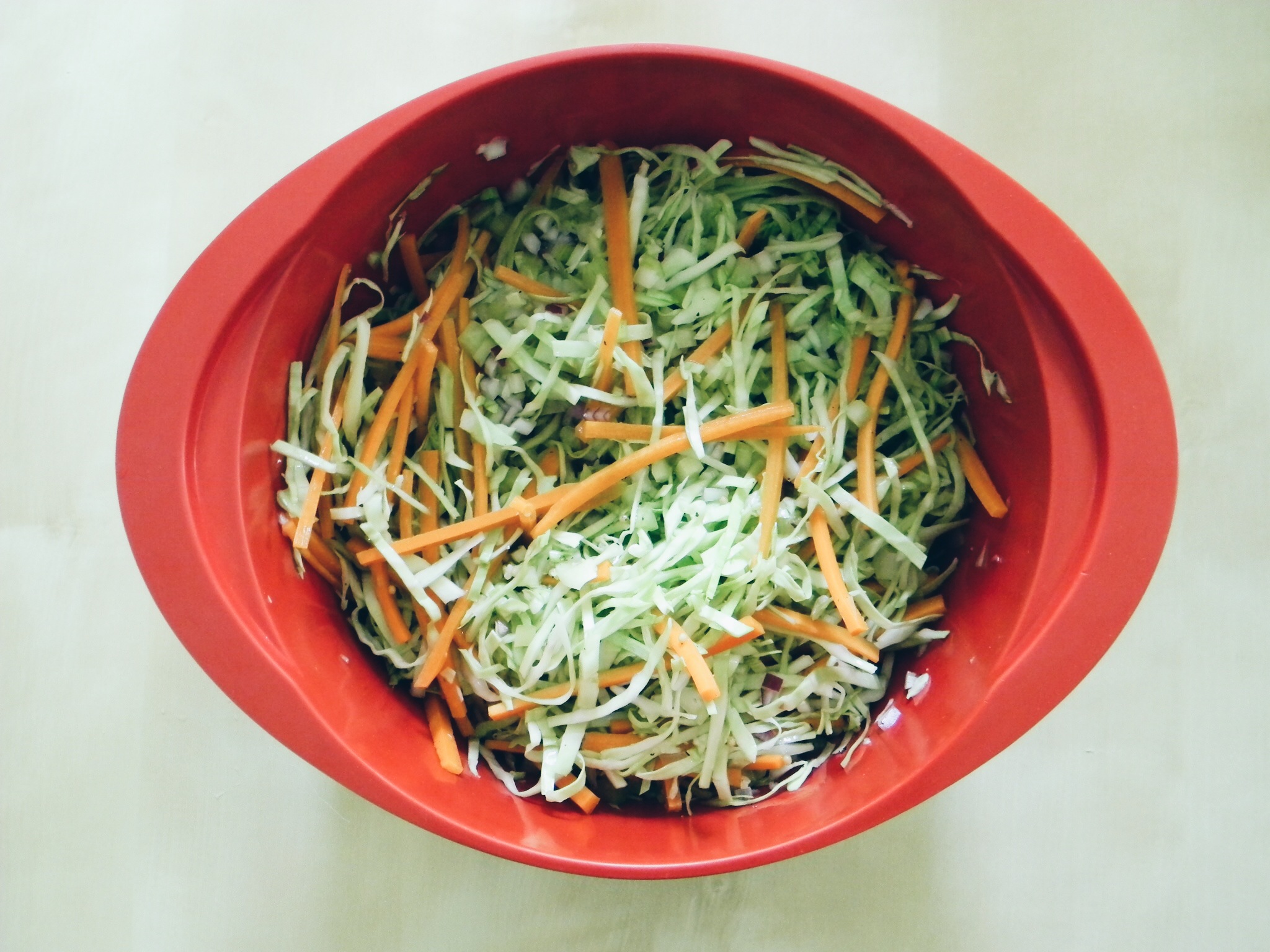 Coleslaw usually refers to a shredded cabbage salad with vinaigrette, usually left to pickle to allow the vegetables to imbibe the acidic flavour. One of my favourite things about coleslaw is the limited amount of ingredients necessary to prepare it.