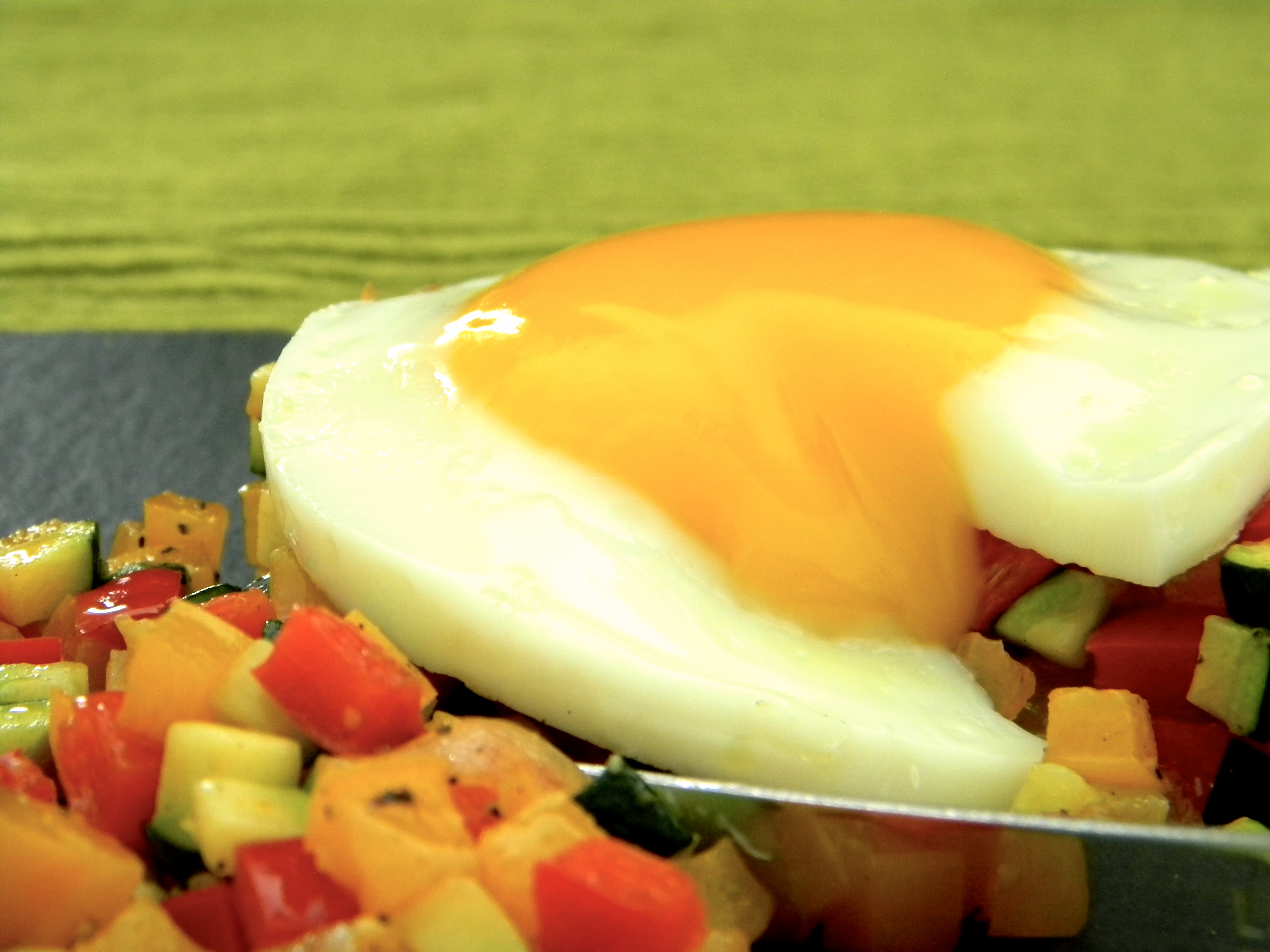 It’s time to indulge with an easy and quick breakfast. It’s a pepper and zucchini hash (minus the potatoes).The vitamin C content is very high, so start your day off right!