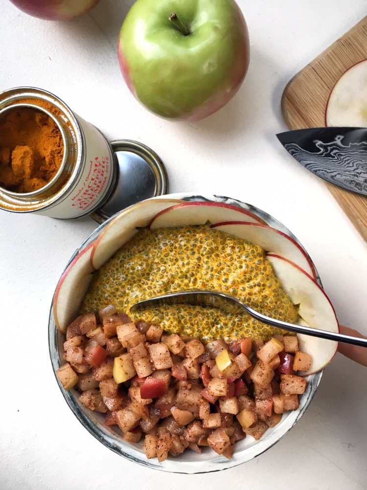 Golden Chia Pudding with Spiced Apples (Serves 2)