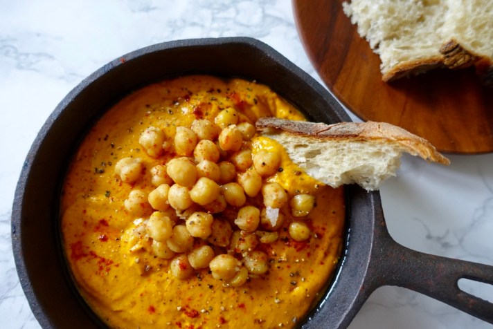 - Place the roasted veggies and cooking liquid in blender with the cashews and blend until smooth and uniform.