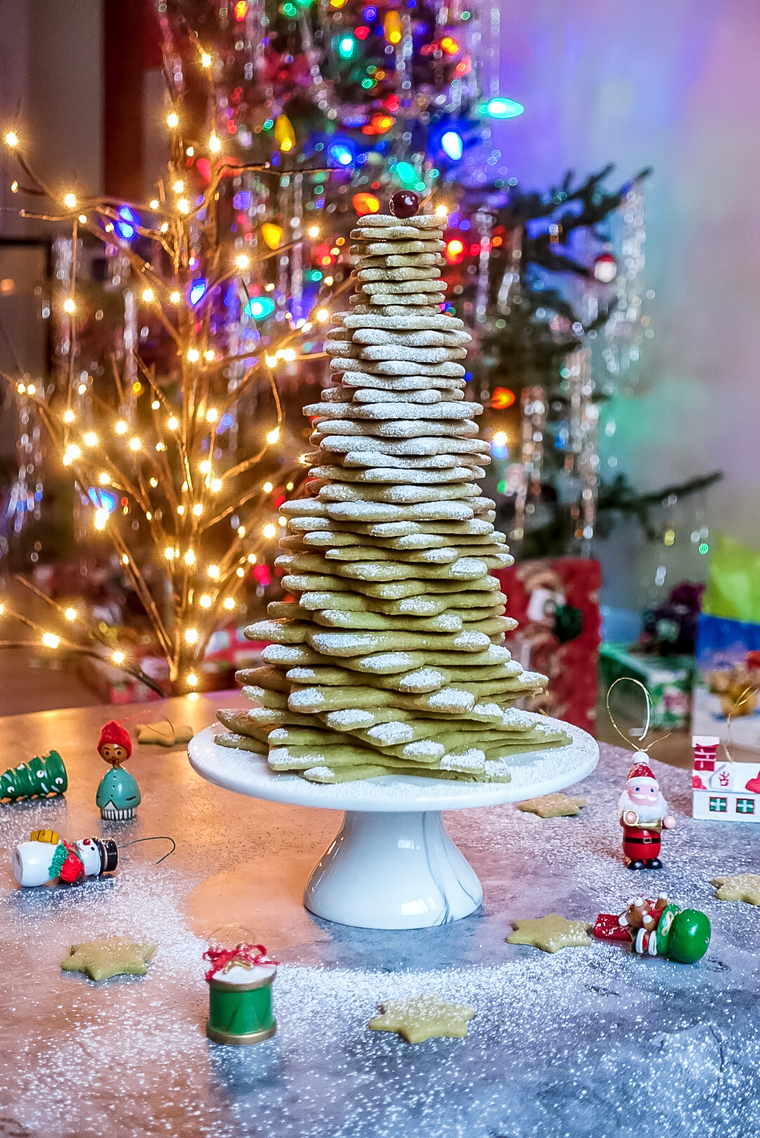 With all our traditional family recipes of sablés, biscottis and orange sugar cookies, introducing a nutty and herbal cookie seemed to be essential for this year! Introducing matcha powder into a tahini cookie recipe was a perfect fit to play on subtle almond and delicate bitterness and to introduce the perfect green hue for a cookie tree.
